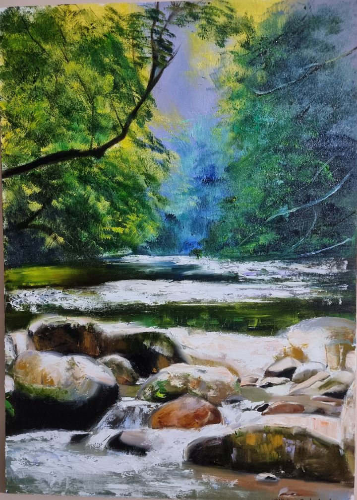 هنرمند: سوسن قوچانی متریال: رنگ روغن روی بوم ابعاد: ۷۰ × ۵۰ سانتیمتر قیمت: ۳,۰۰۰,۰۰۰ تومان عنوان اثر: تابلو منظره رودخانه سال خلق: ۱۴۰۴ کد اثر: ۱۰۶۴۸ ↓ اطلاعات بیشتر سوسن قوچانی ›